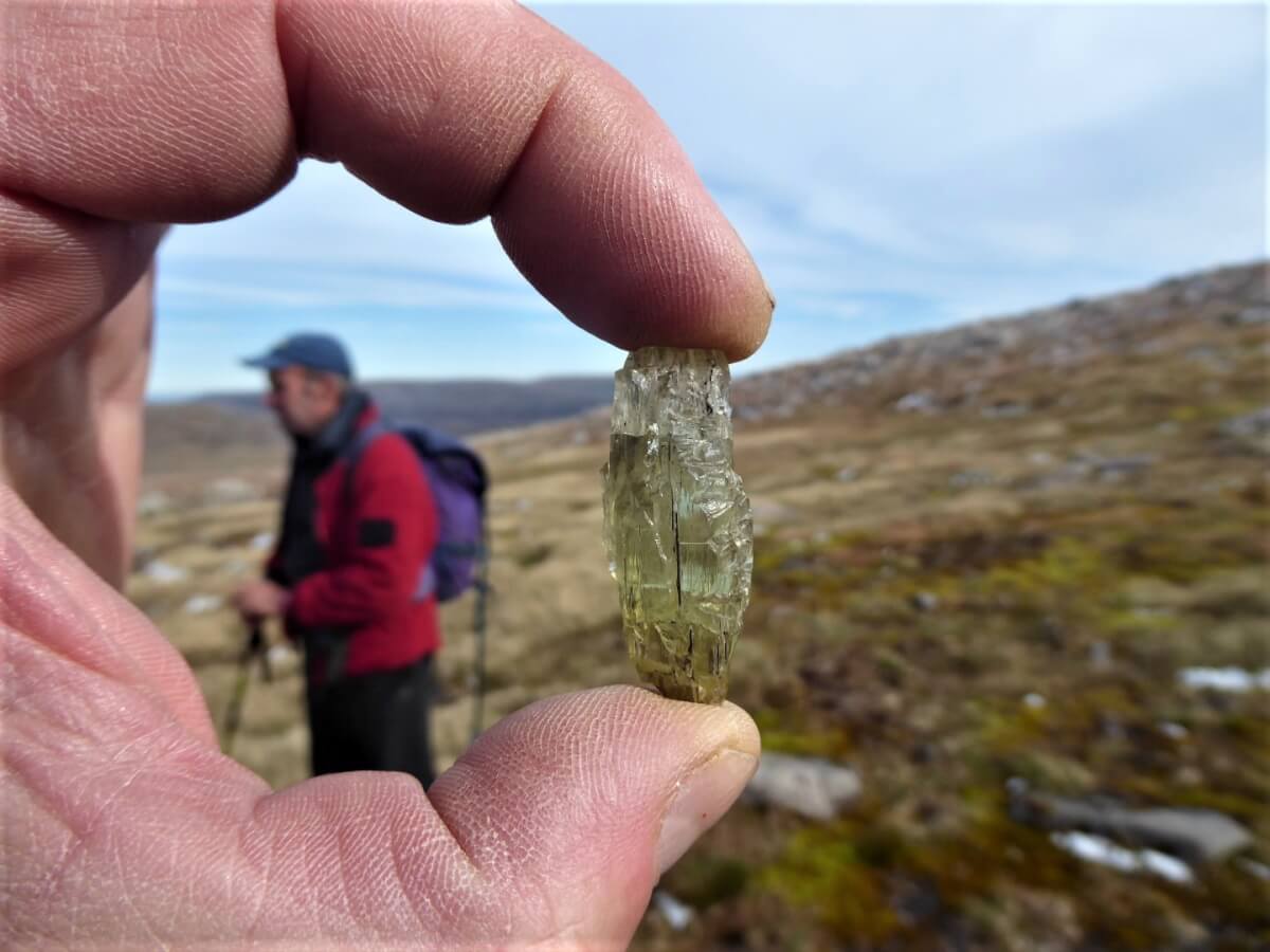 Of course, with all outdoor activities towards the end of the year, you take your chances with the weather, but I think you’ll agree that we certainly managed to strike it pretty lucky for views and all kinds of points of interest to liven up the walks. Andy even found yet another Cairngorm stone to add to his collection (none have been converted into jewelry yet – hint, hint). This one was even more rare – a green Cairngorm, known as a “Beryl” (pictured below).